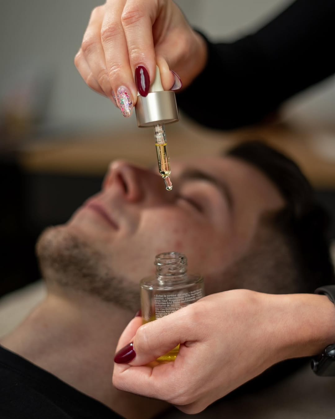 Haut. Beim Microneedling wird die Haut mit feinen Nadeln stimuliert, um die